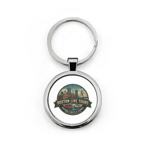 Boston Live Tours Round Stainless Steel Keychain — Vintage Cityscape Souvenir
